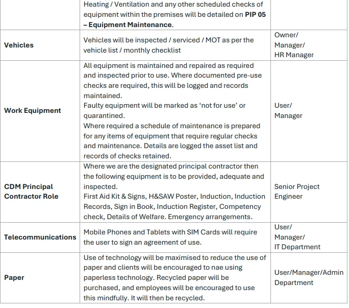 - The Safety Schemes in Procurement (SSIP) certification through NQA will be maintained.